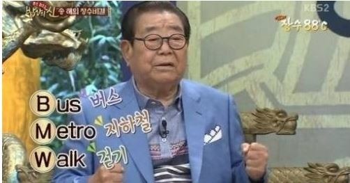 특히 송해는 주위에서 장수비결을 물으면 늘 'BMW'를 강조한다고 합니다. 'BMW'란 버스(Bus)나 지하철(Metro), 걷기(Walking)를 뜻하는 것으로 이를 생활화하여 실천한다는 것입니다. 또한 계단을 오르내리면서 하체의 힘을 기르기도 한다고 합니다.