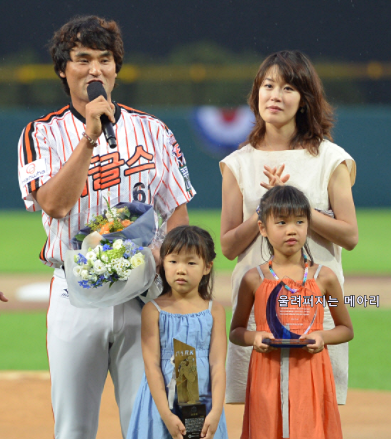 박리혜 박찬호 딸과 함께 은퇴식 참여했을 때 사진.