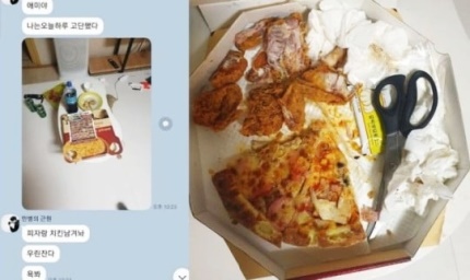 정주리는 이에 "주말에 녹화가 있어 남편이 애들을 봤는데, 모 피자랑 치킨 남겨 놓았다 해서 먹긴 먹겠는데, 치즈 토핑 어디감? 집에 쥐 키움? 치킨은 더 발라 먹어? 카카오톡 안봤음 그냥 쓰레기통으로 직진할 뻔"이라고 적고 쓰레기와 치즈 토핑이 없는 피자, 뼈 조각만 남은 치킨 등이 뒤엉킨 음식 사진을 공개했습니다. 또한 사용한 휴지와 가위도 음식 옆에 놓여있었습니다.