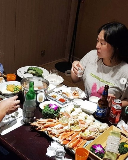 그럼에도 정주리 남편을 비난하는 목소리가 커지자 아예 해당 게시물을 삭제하고 대게를 먹고 있는 사진을 공개했습니다. 이와 함께 "남편이 담날 대게 사준 거 올릴 걸"이라는 설명을 덧붙이며 남편을 옹호하는 모습을 보였습니다.