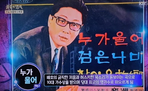 신장염 투병 중에 자신의 최고의 히트곡이 만들어진 것입니다. 이후 배호는 <안개 낀 장충단 공원>이 연속으로 히트하면서 가수상을 휩쓸었습니다.
