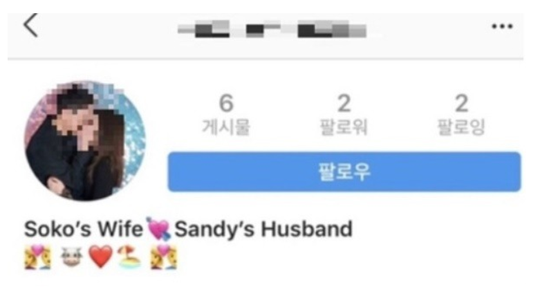 -인스타그램 소개 글 "소코의 아내(Soko's Wife) ♥ 샌디의 남편(Sandy's Husband)"