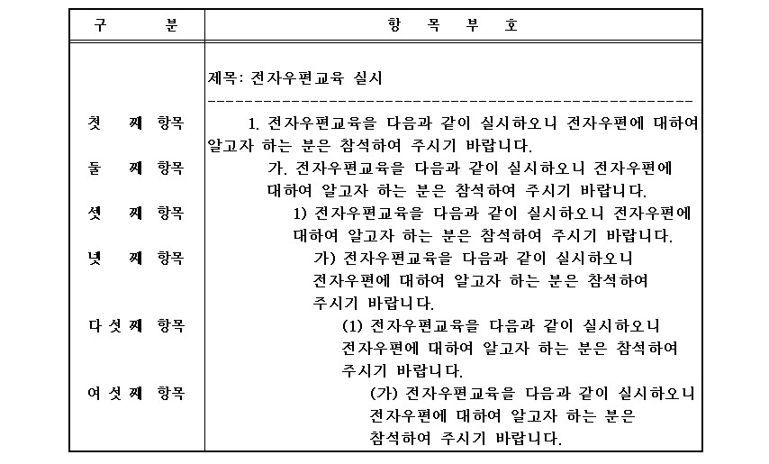 공문서 작성 항목의 구분 역시 달라졌습니다. 문서에서 둘 이상의 항목을 나열할 때가 많은데 이때 항목을 순서대로 표시하되 경우에 따라서 특수기호로도 표시할 수 있게 되었습니다.