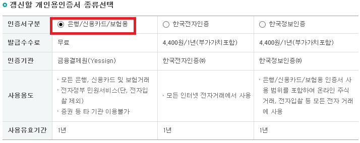 일반적으로 개인이 인터넷뱅킹이나 스마트폰뱅킹, 주식거래를 하기 위해서는 무료인 용도제한용으로 받아서 이용하셔도 충분하답니다.