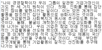 또한, 구인회의 아들 상남 구자경의 경영철학은 이렇습니다.
