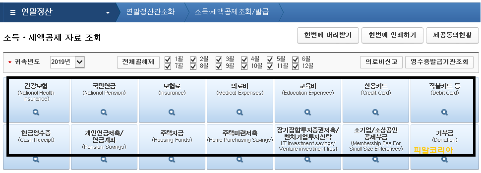 올해는 2020년 1월 15일 간소화서비스가 오픈되어, 누구나 국세청 홈택스 사이트에 접속하여 2019년도 자료를 온라인으로 조회하고, 출력 또는 pdf로 파일을 다운로드할 수 있습니다.
