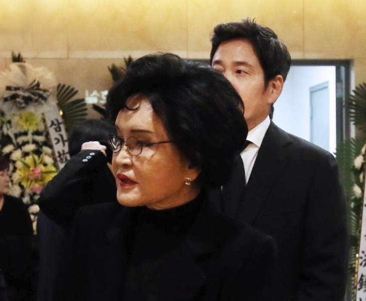 최근 한 장례식장에서 포착된 이명희 회장의 모습인데 포스가 범상치 않아보이며 아들 또한 어머니 기에 팍 눌려있는 듯한 모습도 보입니다