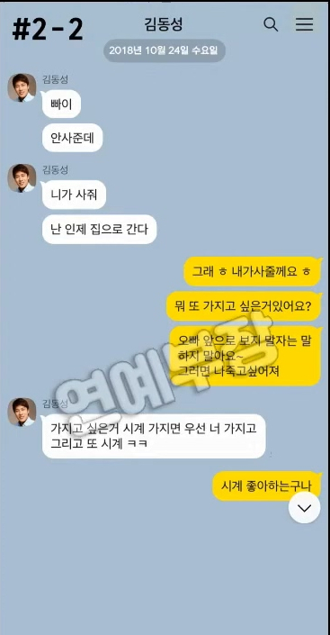 김동성 카톡 참 가관인데요