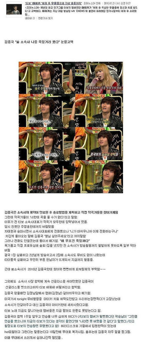 김종국이 터보로 활동하던 시절, 조폭과 연관이 있었던 전 소속사는 문제가 많았습니다.