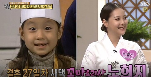 꼬마요리사 노희지는 뽀뽀뽀로 데뷔를 한 인물로 아직까지도 노희지의 얼굴이 기억되고, 떠올려지는 것 같습니다. 통통한 젖살이 너무나도 매력적인 노희지는 몇년전에는 결혼 소식까지 발표하기도 했습니다.