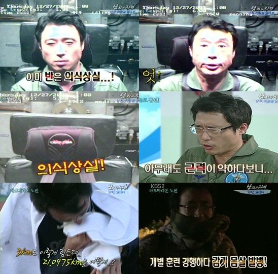 그만두지 않는 한, 이윤석은 울며 겨자먹기 식으로 '티도 안 나는 고생'을 할 수밖에 없습니다. 그토록 힘겹게 촬영에 임하는 그의 모습을 보면서, 우리 시청자들이 어떤 즐거움이나 카타르시스를 느끼는가 하면 그렇지도 못합니다. 그저 답답하고 안스럽고 안타까울 뿐입니다. 만약 전투기 훈련 때 맥없이 기절하는 그의 모습이나, 3000m를 뛰다가 생생하게 헛구역질을 하는 그의 모습을 보고 '재미있다'고 느낀 사람이 있었다면, 감히 추측하건대 새디스트의 성향이 농후한 사람이 아닐까 싶을 정도입니다.