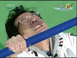 하지만 그게 설정이 아니었다는 것을 저는 '남자의 자격' 에서 제대로 깨달았습니다. 김태원이 등장한 이상, 최소한 '남자의 자격'에서만은 이윤석이 방향전환을 할 필요가 있었습니다. '국민약골' 이미지로는 김태원과 완전히 겹치게 될 뿐 아니라, 여지없이 밀리기까지 하니까요. 그런데 안타깝게도 그는 방향을 전환하지 못했습니다. 첫째로는 아이디어의 부재가 문제였을 것이며, 둘째로는 명실상부한 약골 체력이 문제였던 것입니다.