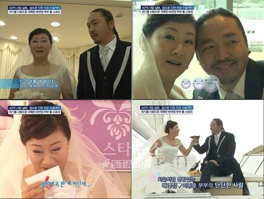 배연정 이종호 부부는 보통 사람들이라면 서너번은 이혼 했을 위기를 겪습니다. IMF때 남편 사업이 쫄딱 망한 것, 아내의 자궁을 덜어내는 수술을 비롯한 두번의 암투병, 그리고 아내 역시 사업 실패하고 우울증에 걸리죠. 하지만 이들은 서로 믿고 의지하고, 또 서로 도와가면서 여전히 잘 살고 있습니다.