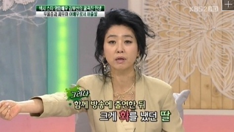 김부선은 2012년 방송된 KBS 2TV '여유만만'에 출연해 "우리 딸은 정말 착한 딸이었다"라며 "그러나 지금 딸과의 사이가 안좋다"고 밝혔습니다.