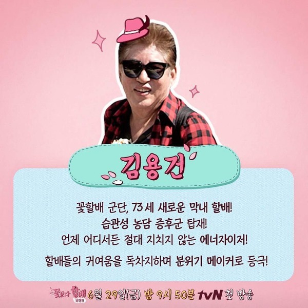 오직 '꽃할배'중에 막내뻘이 되는 올해 73세의 탤런트 김용건이 새멤버로 모습을 보이자,