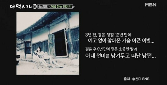 송선미는 "한 번은 얘기하고 지나가야겠단 생각은 했다. 연애 3년, 만으로 2년하고 결혼했다,별로 싸워본 적 없어, 남편은 화를 내지 않고 항상 한결같은 사람"이라며 회상했습니다.