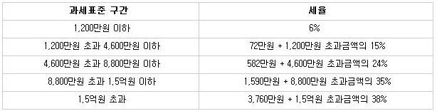아래의 과세 표준을 보고 대략적인 자신의 금액을 판단하세요.