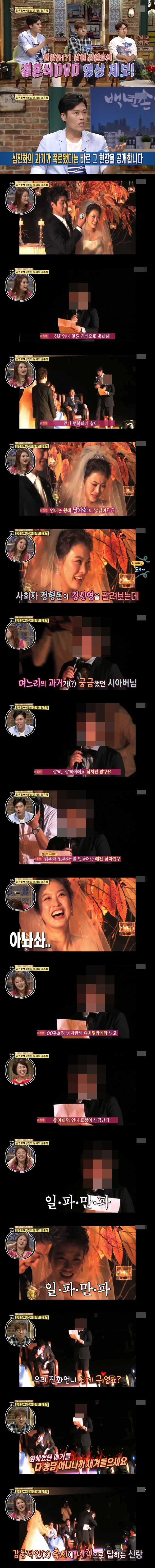 아무튼 결혼식장에서, 김신영이 심진화의 전남자친구 리스트들을 줄줄 읊습니다.