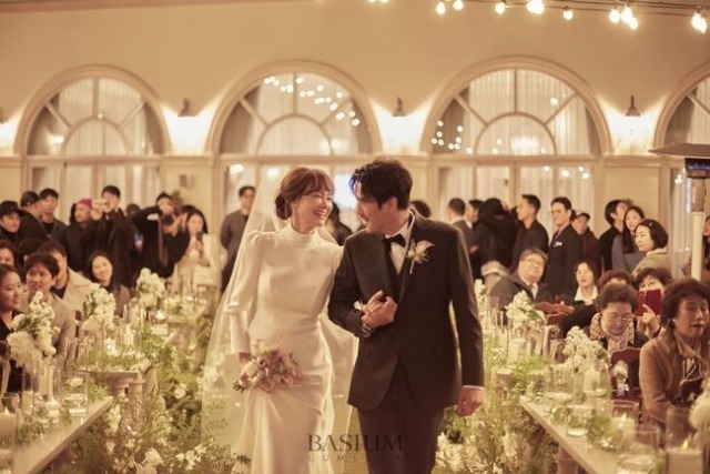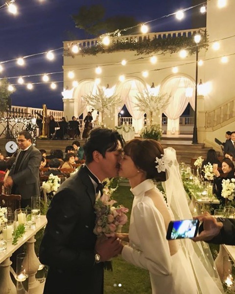 이후 공개된 양미라 정신욱 결혼식 모습은 아름다운 플라워 장식과 노란색 톤의 조명에 별빛처럼 반짝이는 전구, 남다른 비주얼을 자랑하는 신랑 신부의 모습이 흡사 영화의 한 장면처럼 보입니다.