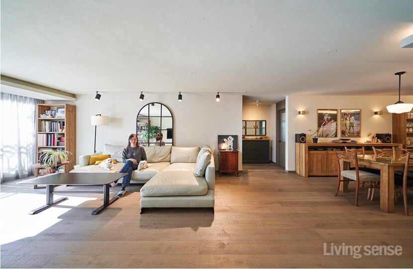 반려견 두마리를 위해 아파트를 개조한 김소연씨는 티크목과 엔틱한 가구들을 활용하여 어두운 1층 아파트를 나무그림자가 내리쬐고 편안한 아파트로 새로 리모델링하였습니다
