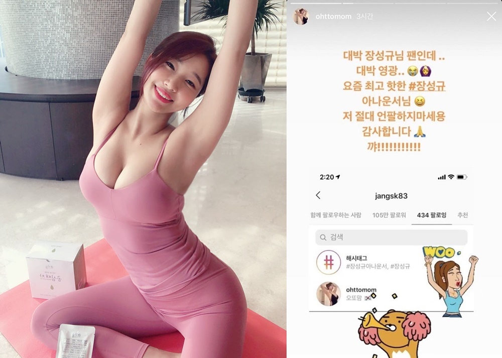 장성규가 자신을 팔로우 했다며 인증을 해 논란이 됐다.