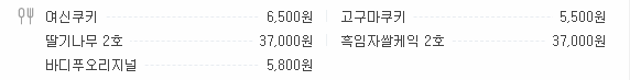 조민아 베이커리 가격 (여신쿠키 가격) 리스트