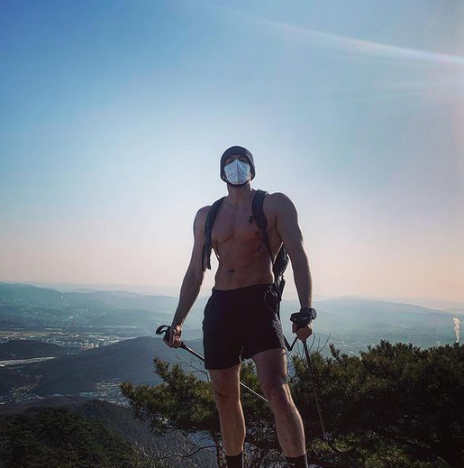 어깨로 범상치 않은 피지컬을 자랑하죠
