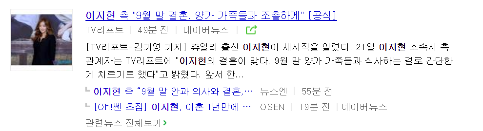 21일 한 매체는 이지현이 결혼한다는 기사를 보도했는데요.