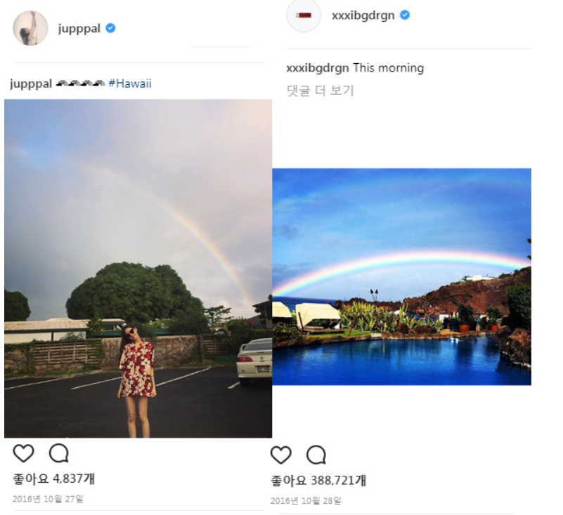 -이주연은 이 당시 인스타그램에 미술작품 사진을 올렸는데 이 사진은 지난 11월 지디가 올린 사진과 동일함.