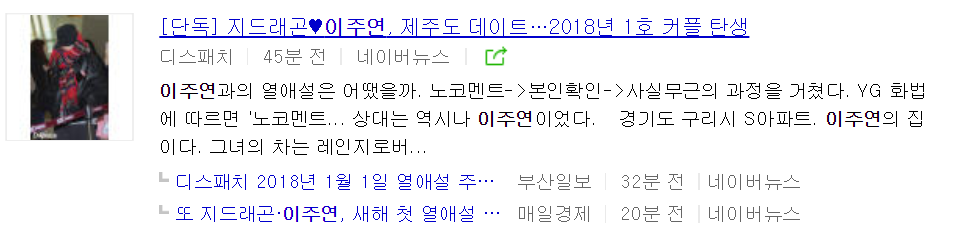 [디스패치 1월 1일 지드래곤 이주연 열애설 보도]