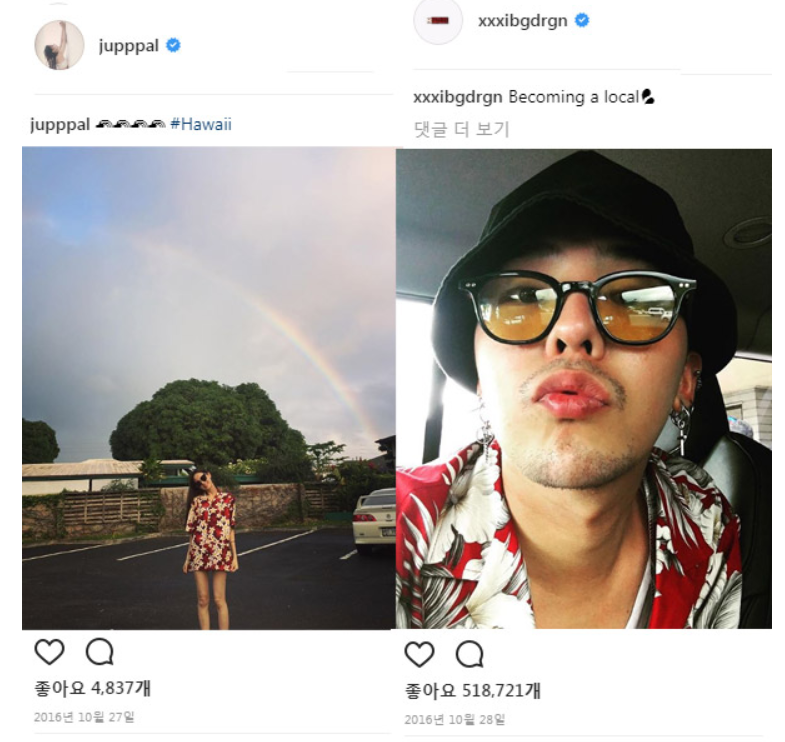하지만 네티즌들은 지드래곤 이주연의 인스타그램에서 두 사람의 열애증거를 찾기도 했습니다.