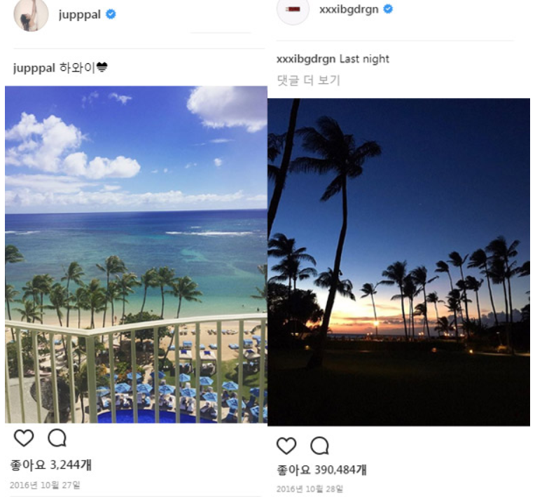 -이주연은 이 당시 인스타그램에 미술작품 사진을 올렸는데 이 사진은 지난 11월 지디가 올린 사진과 동일함.