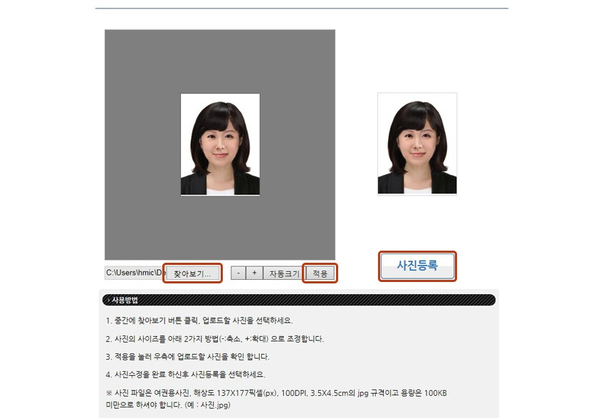 최근 시험일정에서 접수 버튼을 누른 후 직종을 확인하고 직급 및 직렬을 선택합니다. 선발 예정 인원 및 자격/면허/학력 제한 부분도 확인합니다. 사진 업로드시 사진 규격은 여권용 사진으로 해상도는 137*177픽셀, 100dpi, 3.5*4.5cm 규격의 jpg, 용량 100kb 이하로 준비합니다.