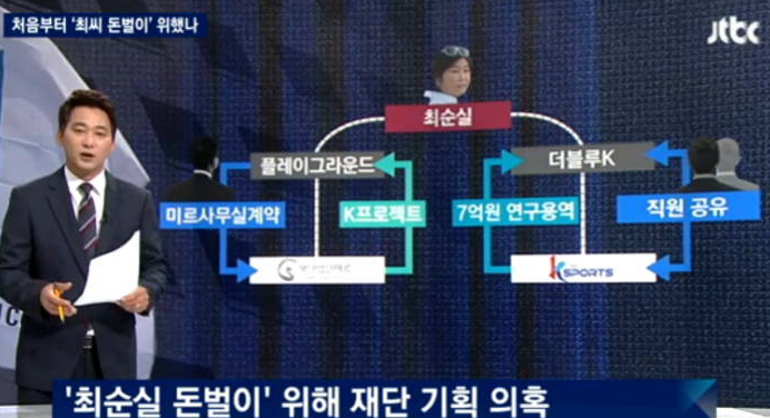 더블루K는 최순실의 개인회사(이사: 고영태)이고 플레이그라운드는 최순실이 지배한다고 밝혀진 회사인데, 미르재단, K스포츠재단의 설립 직전에 만들어졌다고 합니다.(JTBC보도). 재단이 대기업으로부터 모금한 수백억원 자금을 사유화하려했습니다.