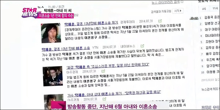 또한 부인은 탁재훈이 외도를 했으며 자신이 미국에 있는동안 생활비를 지급하지 않았다고 말하면서 이혼 법적공방을 펼치게 되죠