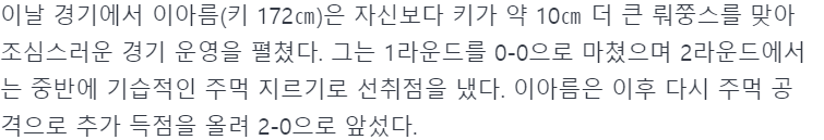 자신보다 10cm나 더 큰 선수를 상대하며 화제가 되기도 했습니다.