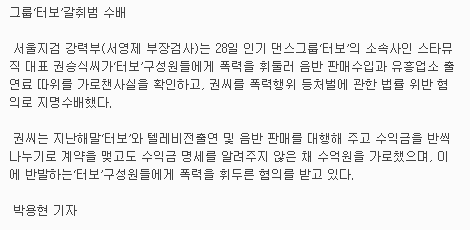 (사실 이때 검찰의 주요 수사 대상은 소속 가수들에 대한 폭력 혐의가 아니라, '소속 가수를 키워달라'는 뇌물 청탁 혐의였음)