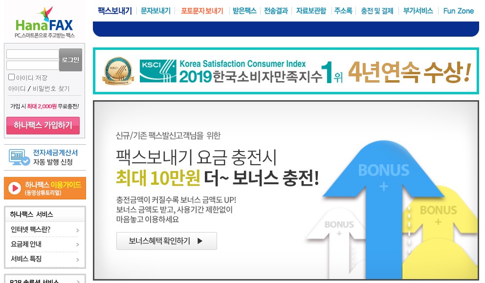 하나팩스 회원 가입시 최대 2,000원이 무료충전됩니다. 하나팩스는 수신과 발신이 함께 되는 서비스가 있고 발신 전용 서비스만도 있습니다.