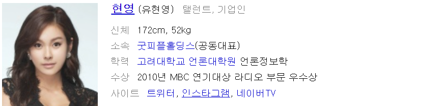 그럼 라디오스타에서 다 알지 못한 현영에 대해서 조금 더 살펴보도록 하겠습니다.